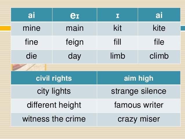 Find examples of american english words for each sound of the american english language.