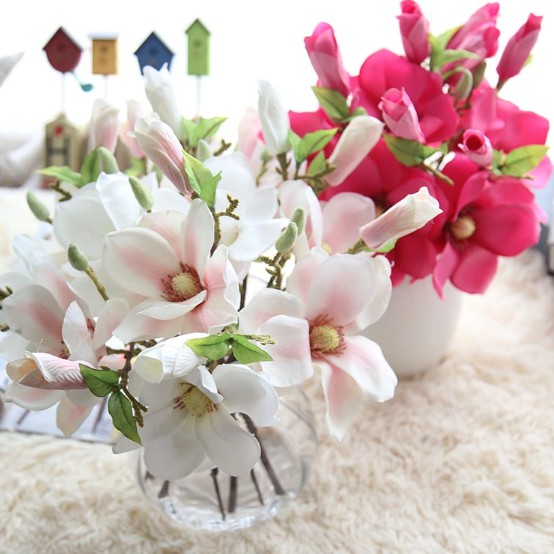 Minyulua 5pcs artificial magnolia flowers silk white magnolia flowers realistic silk flower bouquet for home table store floral arrangements wedding holidays party decor. With christmas silk flowers, fall silk bouquets, silk garlands and so much more, where do you start? Nearly natural's perfectly replicated fake silk magnolia plants and flowers are a great way to keep your environment warm, cozy and welcoming the whole year. Quality silk flowers, trees & arrangements at exceptional prices. Source high quality products in hundreds of categories wholesale direct from china.